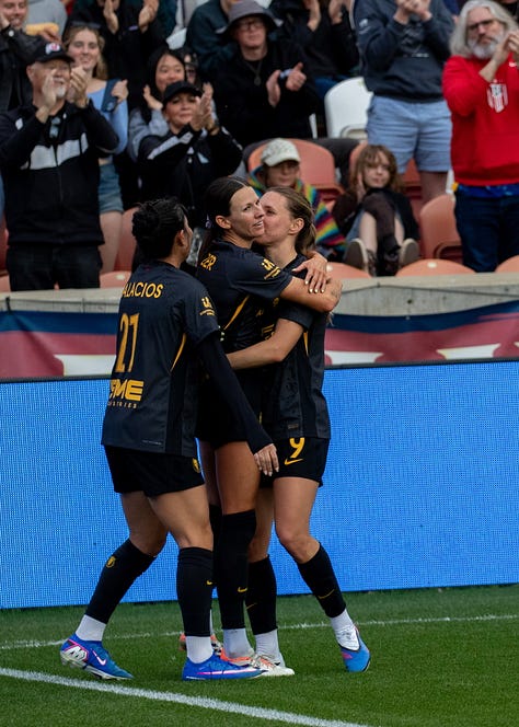 Prašnikar scored her first goal in the Royals’ new “Swarm” kit when Madison Hammond launched a long ball across the penalty box in the 67th minute, Cloé Lacasse centered it towards Kiana Palacios as a San Diego player stepped in front of her, and the ball landed at Prašnikar’s feet for a one-touch strike that momentarily equalized the two sides.